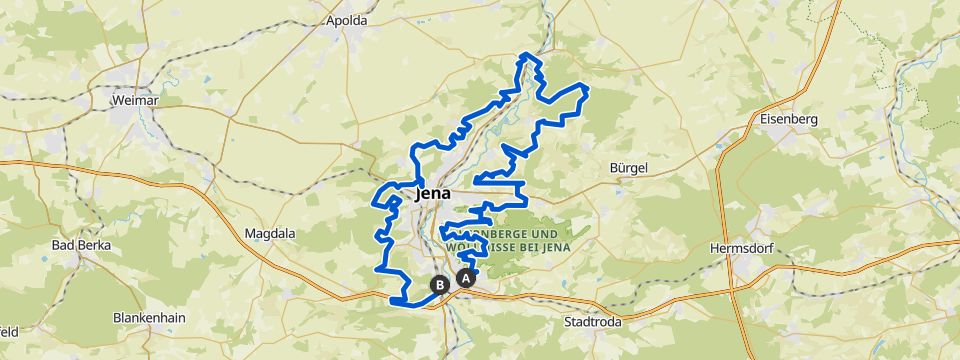 Das könnte auch an deinem Muskelkater liegen. Die Etappen sind inklusive Ein- und Ausstieg zwischen 9 und 18 Kilometern lang und du überwindest bis zu 500 Höhenmeter pro Tag. Je nach Fitness planst du dir für die Tour fünf bis neun Tage ein. Die einzelnen Etappen sind aber so angelegt, dass du sie auch entspannt einzeln wandern kannst. An manchen steilen und steinigen Stellen ist Trittsicherheit gefragt. Gutes Schuhwerk und Wanderstöcke sind empfehlenswert. Jena erreichst du problemlos mit Bus und Bahn über die Bahnhöfe Jena-Paradies und Jena-West. In der Stadt bewegst du dich schnell und bequem mit der Straßenbahn. An deinen Ausgangsort – die Haltestelle Platanenstraße – gelangst du mit den Linien 3 und 5 (Richtung Lobeda-Ost). Weitere Informationen zur Routenplanung erhältst du unter folgendem Link: vmt-thueringen.de. Nun freu dich auf Weitblicke und erlebnisreiche Tage rund um Jena!